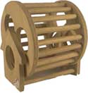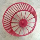Een ander gevaarlijk type radje is een radje op een metalen standaard. Je hamster kan zichzelf bezeren als hij tijdens het rennen zijn hoofdje naar buiten steekt. Als je meerdere hamsters bij elkaar hebt kan een hamster zich bezeren als hij in het radje probeert te springen als er een andere hamster in aan het rennen is. Het volgende radje is dus dubbel fout; het is een open radje met gevaarlijke zij-spijlen: